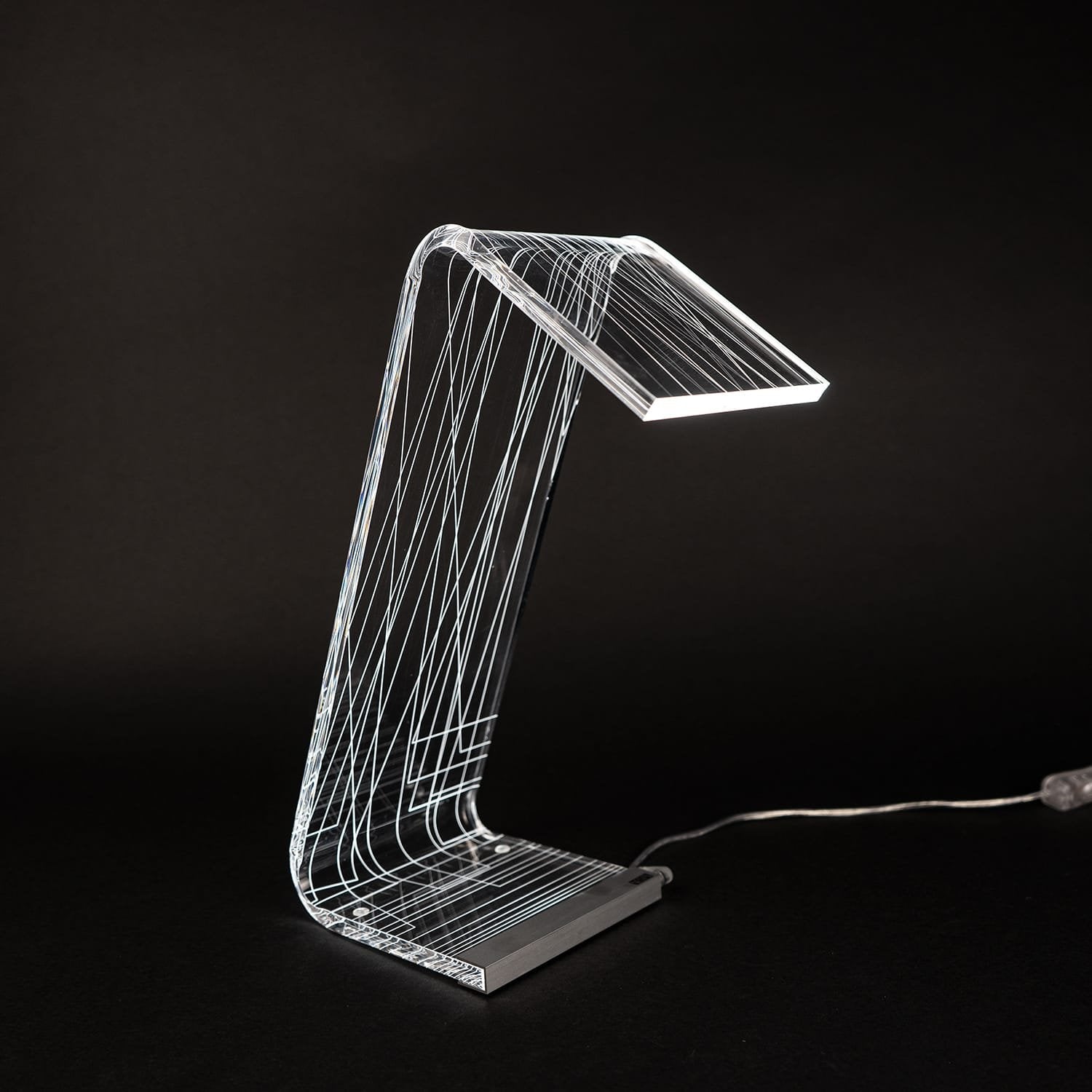 Lampada da Tavolo in Cristallo Acrilico Trasparente con decoro inciso.
