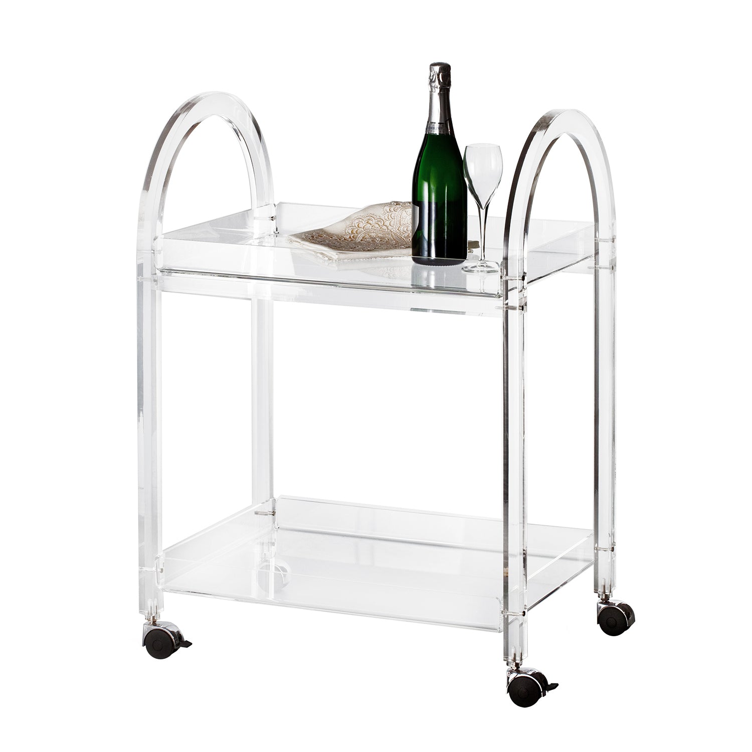 Like Water è un carrello dal design elegante in cristallo acrilico con doppio ripiano.